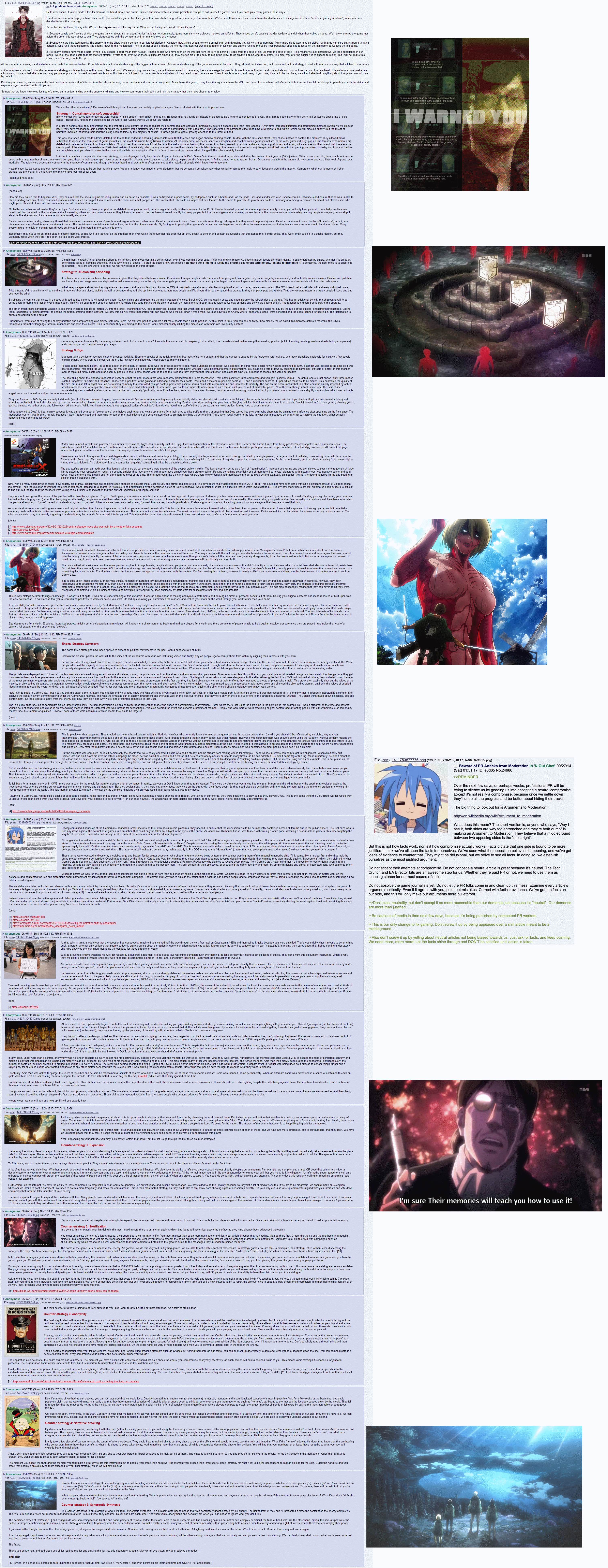 >>42183779>Now I will admit that people are still tolerating progressive propaganda, yet it seems we are back to 2012 leftism.You have seen nothing yet. I believe there will be a massive progressive blowback against the Trump administration. It's sad to say, but this is the logical result of conservatives cucking to the deep state.>But lets not be too simple minded here as Gamer Gate was just a symptom of a disease that actually got noticed.Correct. That's why included the additional context of the progressive entryism into games journalism. Without the ideology, there would be no motivation for the collusion and censorship that triggered Gamergate.>This is all downstream of a decaying culture and its going to manifest in various ways.Actually, it's all downstream from the philosophy of the day. This is why conservatives are inevitable fuckups, their philosophy is a contradictory mess, which is why conservatives will never succeed.If instead of pathologically ballwashing Trump and e-celeb grifters, anons followed the strategy outlined in the titan post, we wouldn't be in such a hopeless predicament. >https://archive.is/FO655>https://www.youtube.com/watch?v=pmtmyzeVcLw