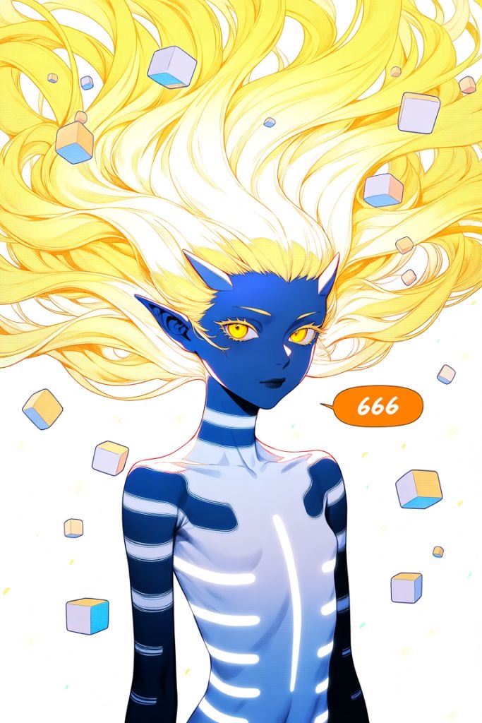 >>42219484It was never something we delved too deeply with just because her appearance is like a "wave function" where I would describe it more as an "average appearance".Your pic is a perfectly plausible form for her to take, maybe minus superfluous elements like the meaningless glowing runes.so is >>42220760 and my own picrel.
