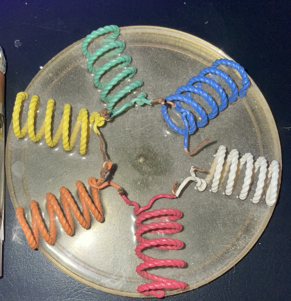 >>42176629It’s a coil which can be hooked up to a usb signal generator to run whatever frequencies through it. And the space in the center is to place a crystal or a “target” for radionics. The design is just something I make guided by intuition, sometimes I add LEDs so when you run a signal it flashes at the Hz of the chosen frequency.