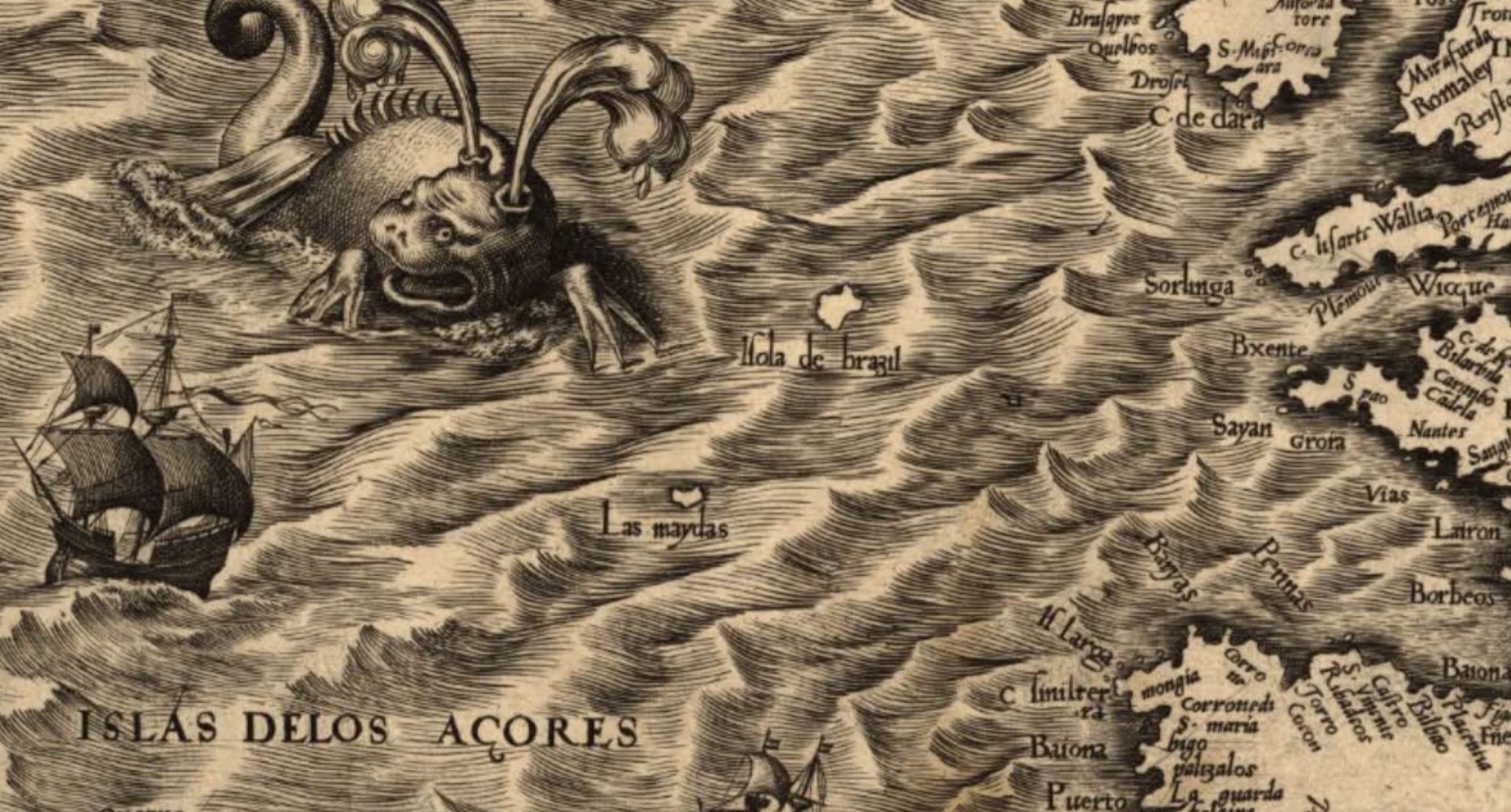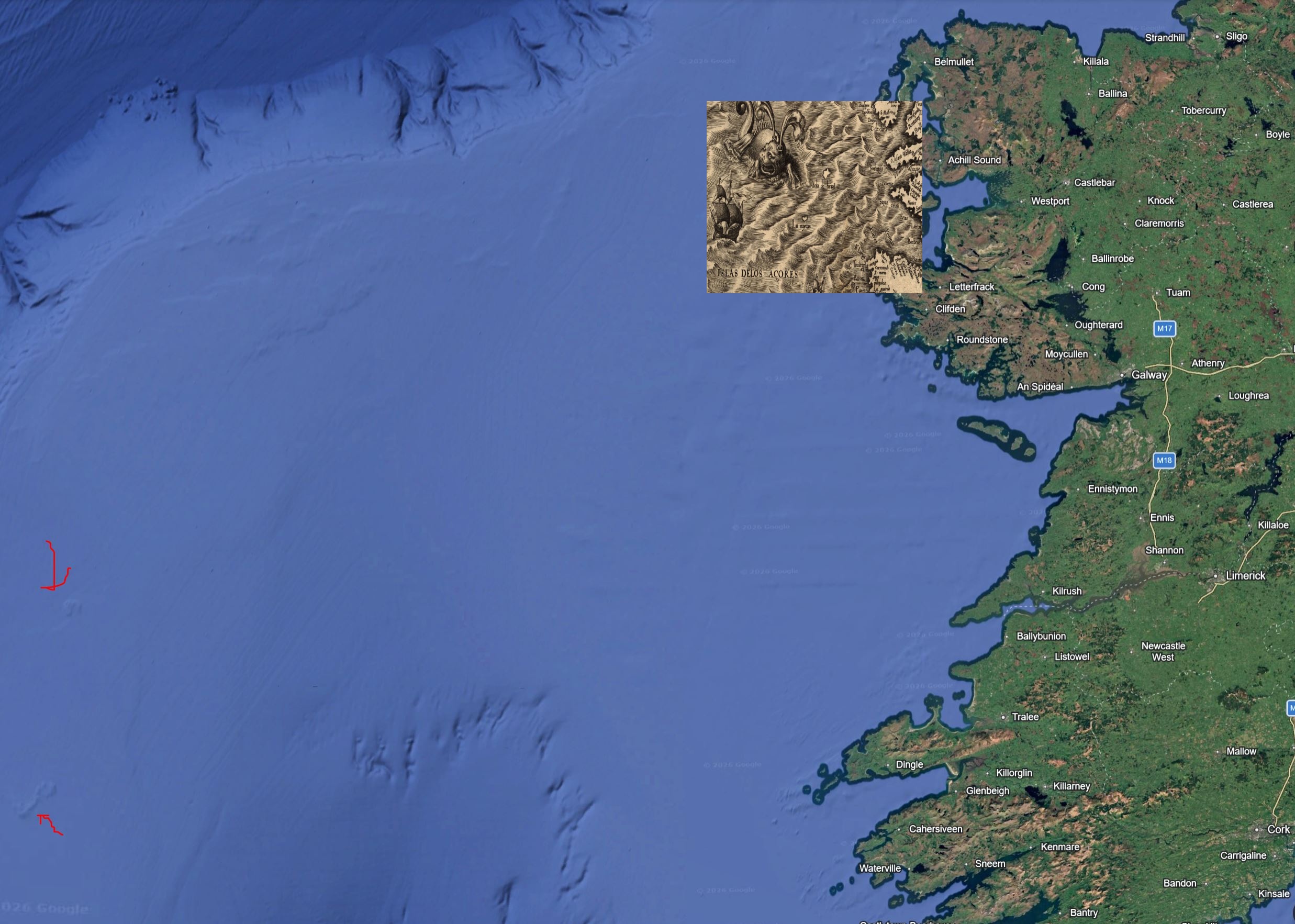 It also says "islands of the azores" right below them, also west of iberia. The area around the azores is actually full of just-submerged islands, islets and shoals that caused shipwrecks, many are just a few meters below the sea, so I imagine they're more likely to have been in that general vicinity. It'd also explain why they're called "isla de brazil" and "las maydas", not exactly names associated with northern europe