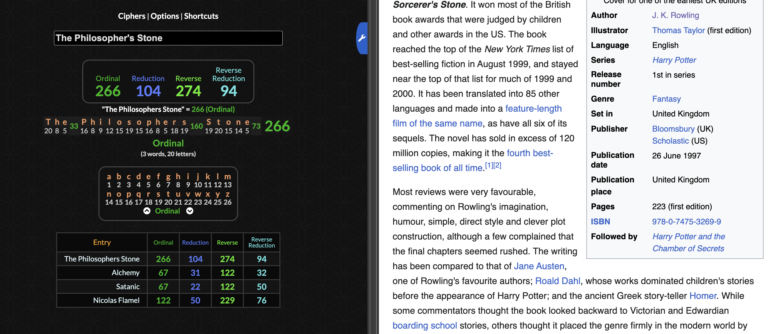 J. K. Rowling is a slave of British Royal Arch Masons (the British 'Illuminati'), who also run MI5/6. The books are heavily cult-coded."J.K. Rowling is an Illuminati Monarch slave - she is an actress who has hardly put pen to paper regarding the Harry Potter books. The original author of the first four books hasn't seen a penny from it. Rowling was only ever a puppet actress to dupe the media, and wasn't allowed to keep 99% of the money generated from this massive industry. The real author of Harry Potter created the hellish prison 'Azkaban', including ‘the dementors’, after horrific oil cult mind control programming. It was based on her experience in Azerbaijan. Another note, Rowling was also present at the Templar rite in which Madeleine McCann died - hence her offer of a reward in public, was all the more sickening.""What have the Harry Potter books got to do with all of this? They are a thinly disguised allegory for the Illuminati PSI projects run by British Intelligence and immortalised in fiction. All of the torture and abuse prettified into a fairytale. Rowling was on one of the courses but is still under mind control and being used to write it all up for future generations as programming scripts. See Alice in Wonderland, Three Men in a Boat…""My aim is to expose the reality upon which this mythical and ‘magical’ story is based. The reality was the MI6 Illuminati mind control program, not located at ‘Hogwarts’ but Fort Monckton. The Harry Potter books are all about re-writing the most hideous torture and abuse which went on during the Illuminati mind control program.""Rowling was chosen to front this series of books because she was so malleable. She wanted fame and fortune without cost. Her Ashkenazim parents had bought her out of British Illuminati slavery and had also bought her what is known in the trade as a 'Pen and Ink Stand': A ghost-writer who works as an unpaid slave - one of British Intelligence's operatives."