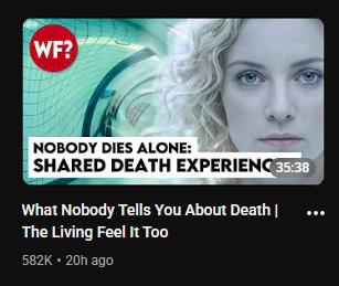 >>42171054You don't need a tl;dw, it's a video about SDEs (Shared death experience) he tells a few cases and at the end he says they haven't been scientifically proven but also neither debunked and there are many stories like this, basically what we already know.There's also this other youtube channel that has been popping off, sitting at 1.1 M subs right now, largely dedicated to NDEs and spiritual talks.NDEs are increasingly becoming normie accepted knowledge, it's only a matter of time.