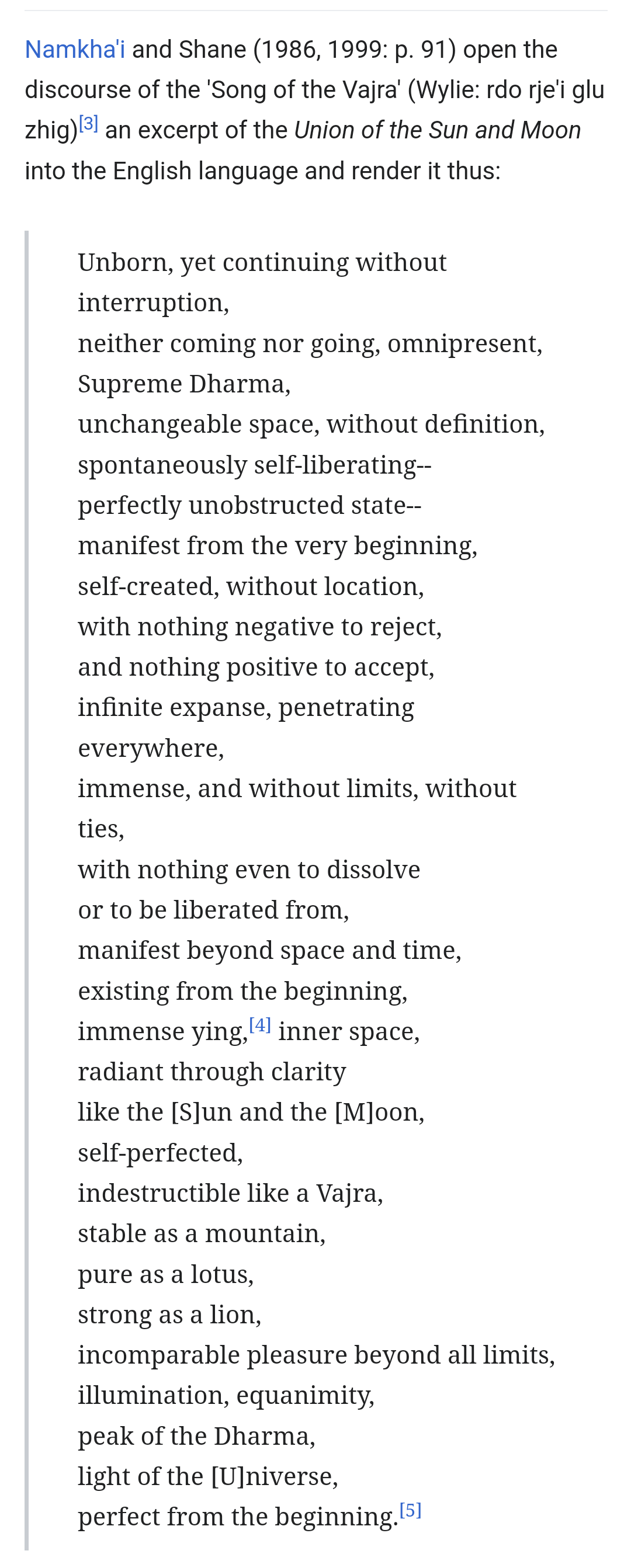 spontaneously and effortlessly present, pristine, immaculate, tranquil, homogenous, impartite, resplendent, brilliantly pure, undefiled, non-discursive, seamlessly expansive, the revealer of all phenomena yet devoid of them, original, unstructured openness, undifferentiated, immediate yet not an object, numinous, naturally occurring, invisibly shining, spotless, lucid, relaxed, timelessly complete and spacious, the basis of all and yet it requires no basis, indivisible, serenely abiding in the plenitude of itself, signless, ever-free, oceanic primordial perfection, remaining all the same even when its forgotten, undecaying and translucent, reflexive, unconditioned, beyond 'this' and 'that', beyond 'is' and 'isn't', elegantly simple, free from conceptual elaborations, soundless, constantly gleaming, undecaying, beyond increase or decrease, majestic, glorious, united, radiantly clear, irreducible, free of acceptance and rejection, inestimably valuable, permeating all, hidden to the senses yet obvious