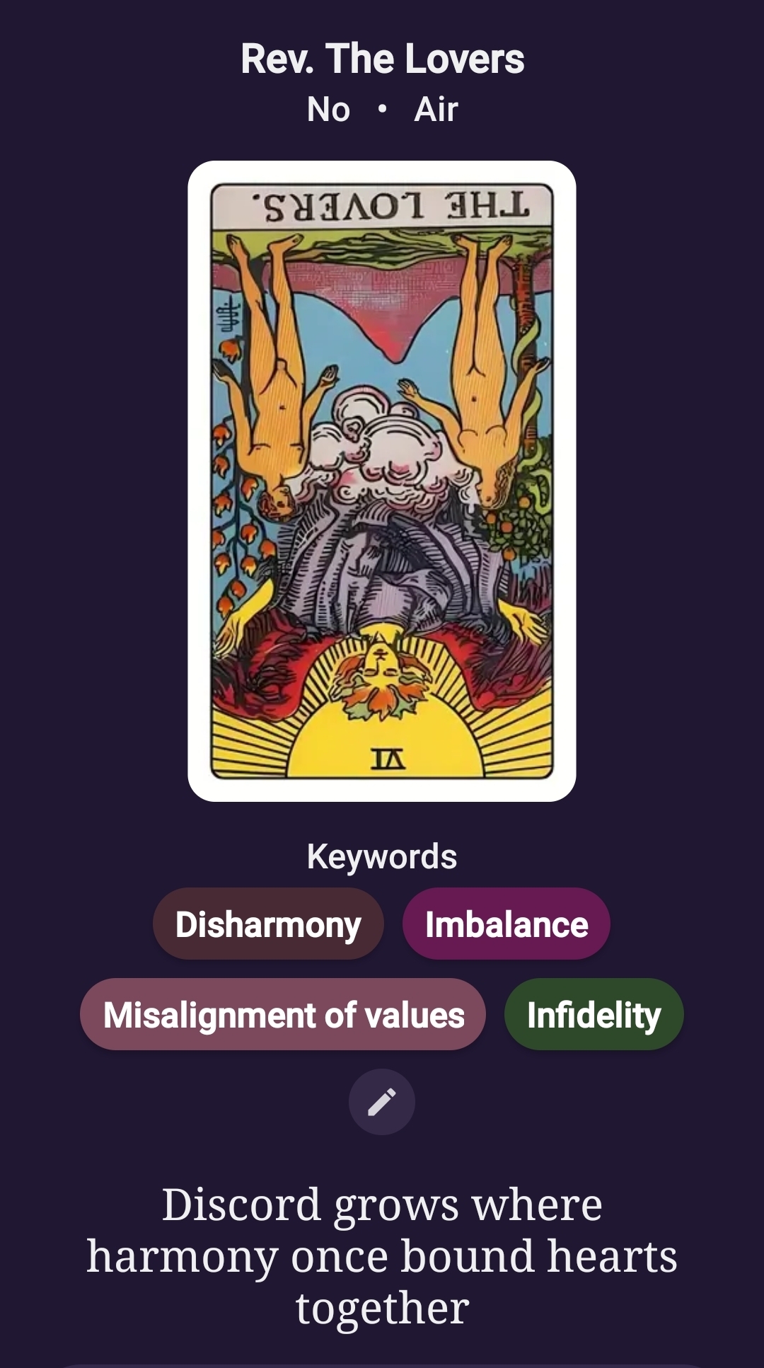 >>42204705Weird how ? I think cards can change meaning depending on context and other cards, altho i do agree that they generaly relate to the same thèmes, yknow not the shape but the nature of it