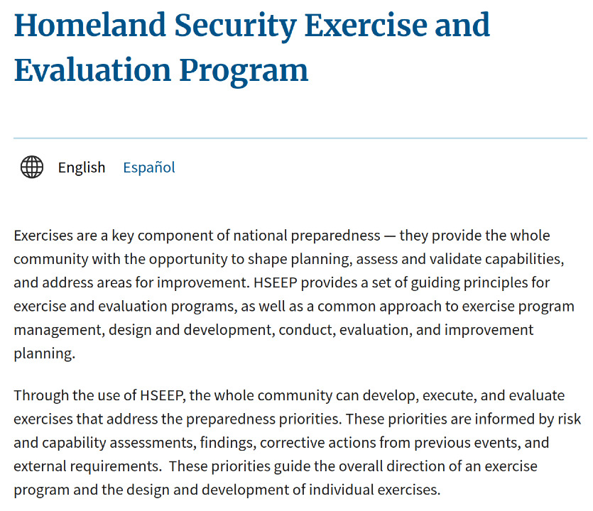 >>42218650I'm not going to pretend for a moment that you don't know what puns are.You are being deliberately disingenous.https://www.fema.gov/emergency-managers/national-preparedness/exercises/hseep