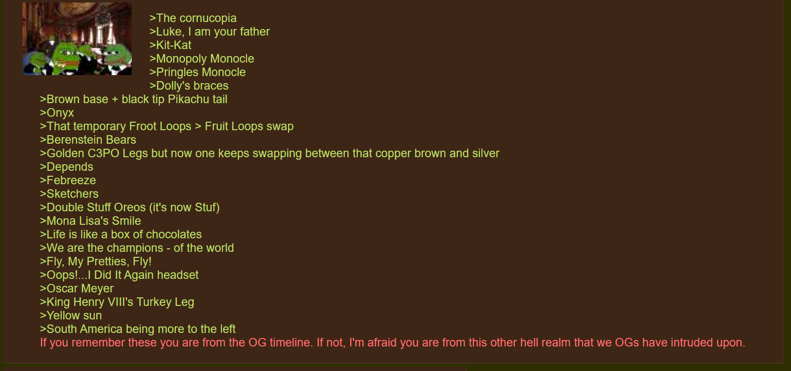 I vividly remember the cornucopia and I think we are glitching timelines now.
