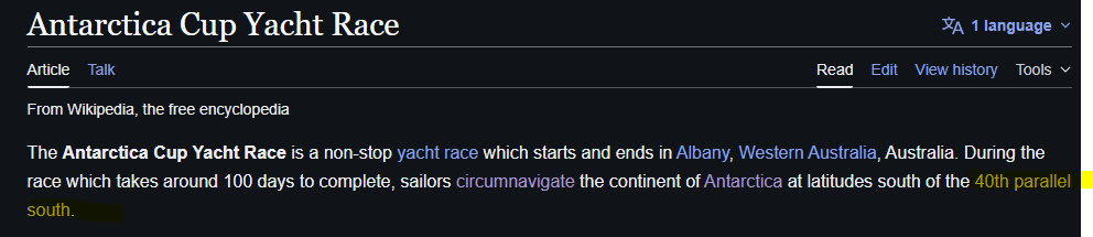 >>42231018I'm not certain but if I had to choose I would agree it's prob nothttps://en.wikipedia.org/wiki/Antarctica_Cup_Yacht_RaceAnd I still want an answer for this. Is this yacht race just fake? and everyone who won? Really wis hthey could record their yacht during the race...