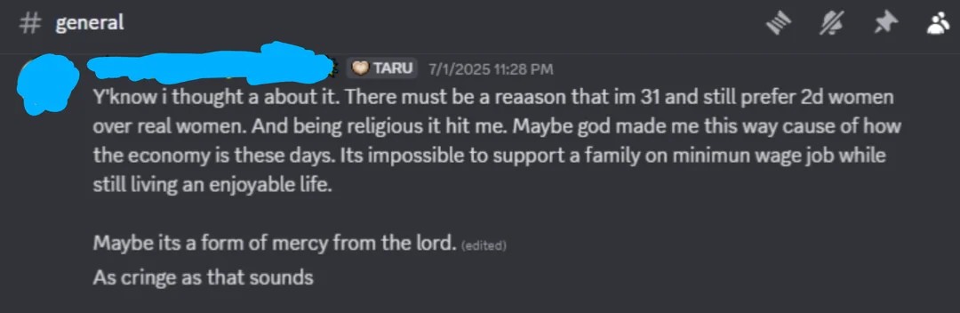 >>42234758its actually a pretty discernable reason and its whats been socially imposed as the standard. good thing, that standard, has overwhelmingly been from satanic media, or other cultural forces, literally run and made from the ground up by actual demons