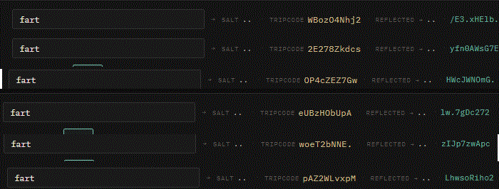 >>42233268two hashes = secure tripyour program is probably using the old encryption for secure trips (it got updated after the hack a couple months back)