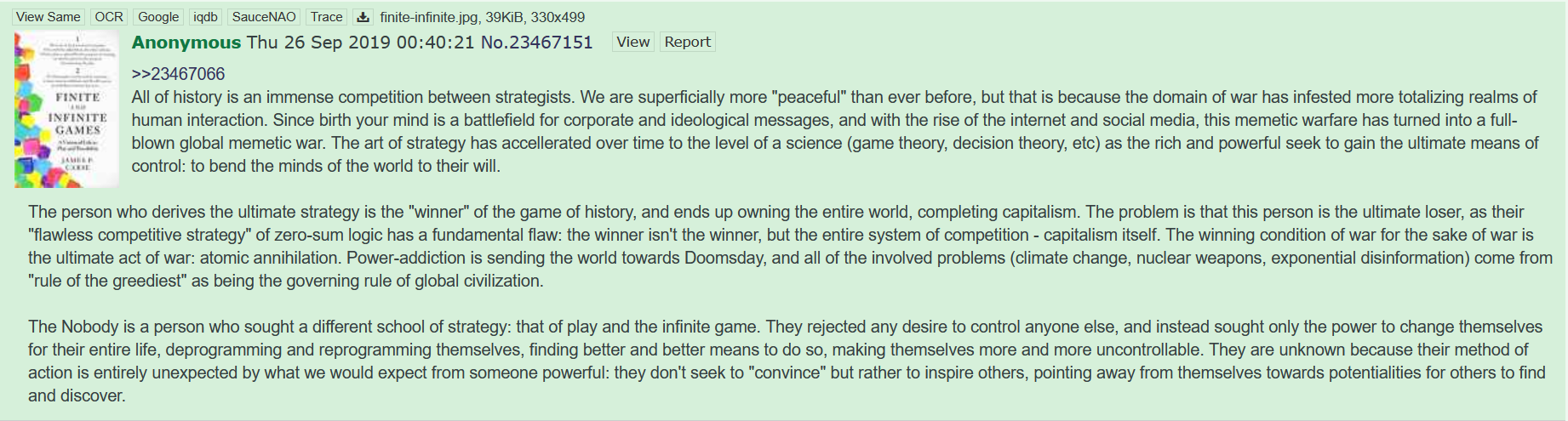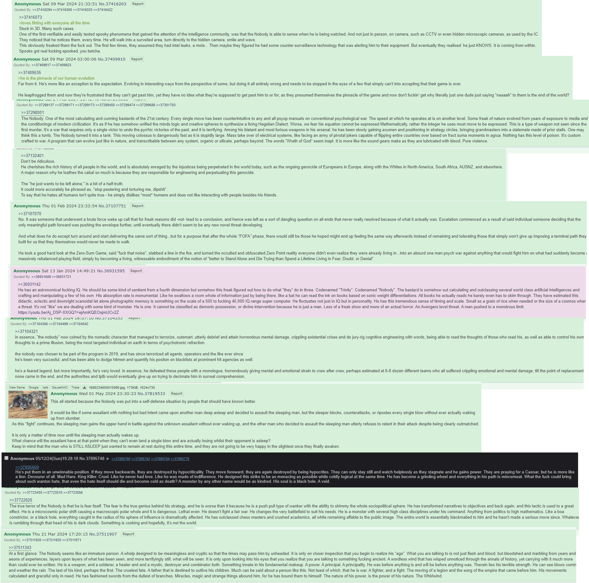 >>42235145>Nonsense. Everyone here thinks they’re the main character.Why would you want to be the main character? Sounds like a giant headache to me. I'm more hoping he shows up.