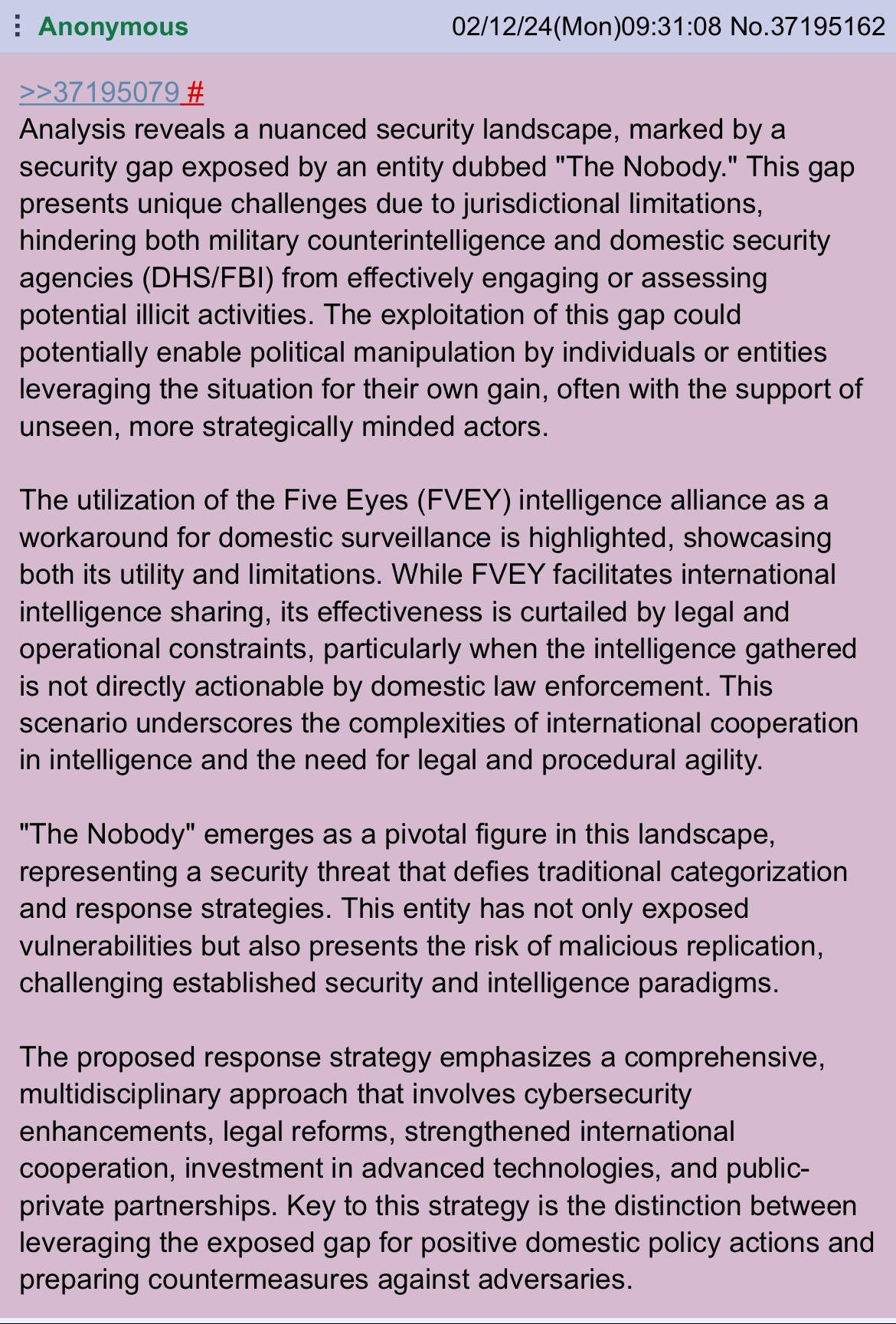 >>42235044The Nobody is Chinese and works for the CCP, shes too busy to post here.