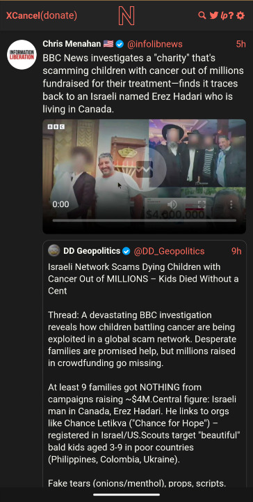 >>42235302Oncology is one of the biggest, and darkest scams of our sick, alienated world. Worse than vaccines. Cancer is not a disease, it's a biological program. That is supposed to heal itself. And has been proved many time to, without (((chemo))). Most of the time, it's the chemo(((therapy))), or radiation, that kill the sick person. Not the cancer itself. Go check German new medecine (Ryke Geerd Hamer). >>42235663This. Short version.
