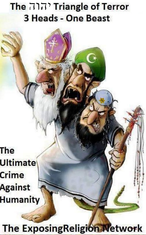 Technically it's the Jews. Because they created Judaism, Christianity and Islam in the first place. These 3 religions worship an absolute abomination that constantly requires bloodshed and suffering in order to survive. This planet will never know peace nor will its people ever ascend as long as the desert religions still live.