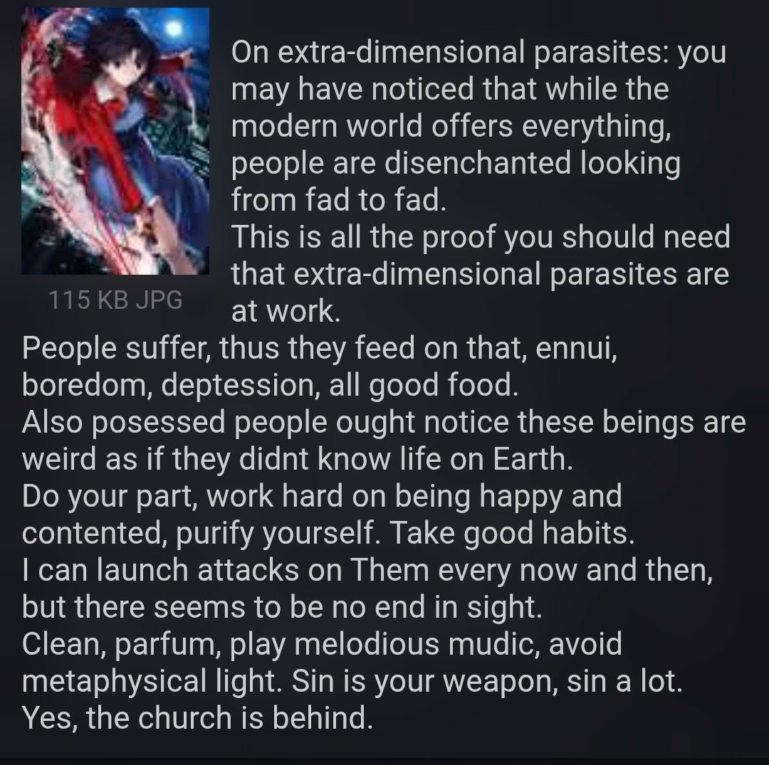 >>42241349I'll have you know picrel. I know because I'm a demon, a shaman, and so on. I used nit to pay heed to this theory of mine that it was parasites from other dimensions, but it is. A few billion stabs later, there are still parasites, no end in sight. One thing I can tell you: It's the church.