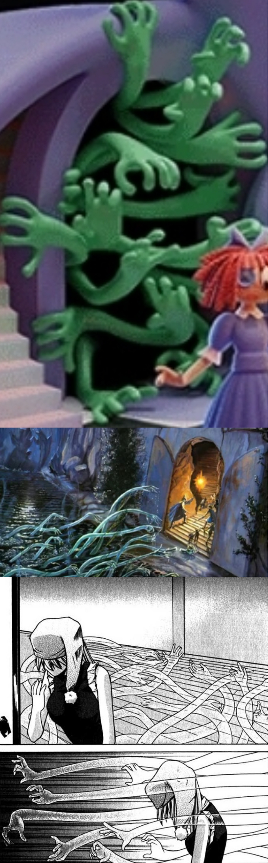 >>42251144They remind me of the tentacles of the Watcher In The Water from the LOTR novels, both green too. Also reminds me of Vectors from Elfen Lied a bit. Is this significant? IDK, maybe.