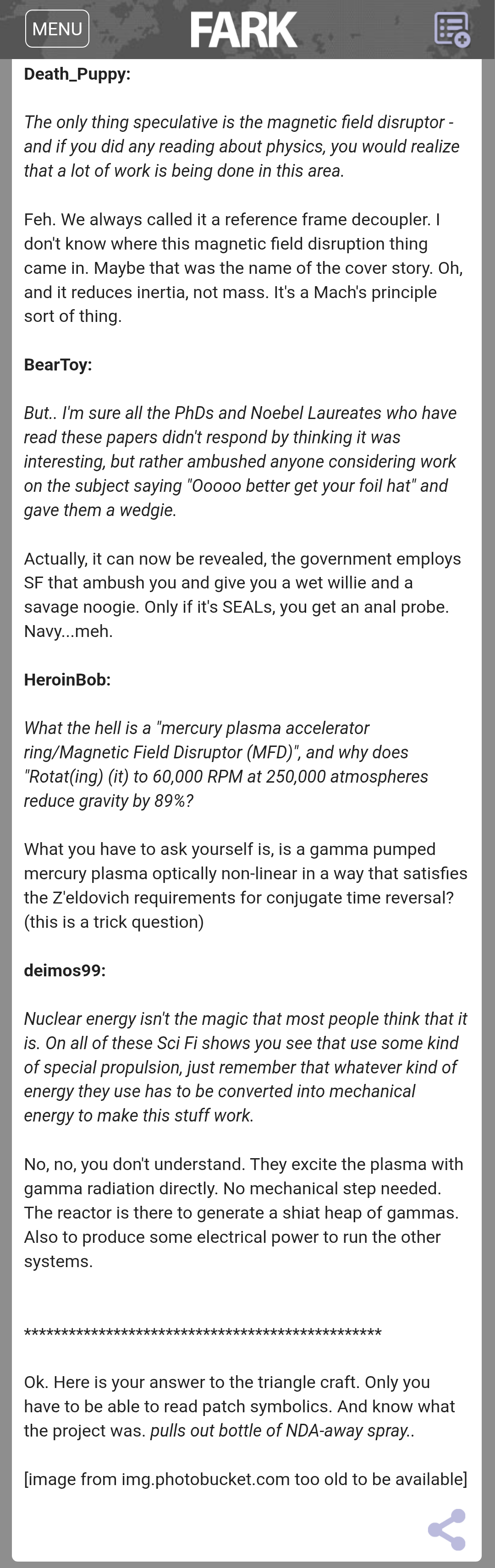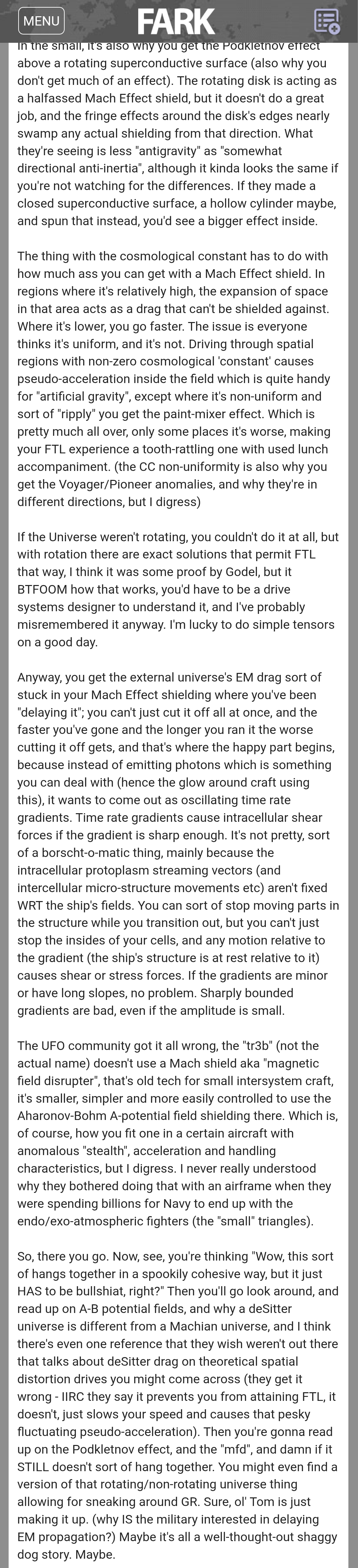 >>42254418No one said that...I personally believe this isn't some made up bullshit. I also don't believe that anti-gravity is real, but inertial reduction and therefore a reduction in effective mass is real.