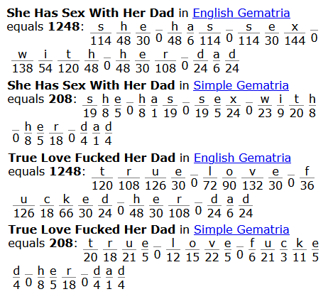 I HAVE A SUSPICION MY EX GF WAS A PLEIADIAN VAMPIRE WHO FUCKED HER OWN DAD AND DRANK BLOOD AND PROBABLY EATS BABIES. I WAS REMOTE VIEWING THEM AND I SAW EVERYTHING. THEN THE MATRIX REVEALED IT TO ME.SHE WAS FUCKING AND SUCKING HER OWN DAD'S DICK WHILE WE WERE TOGETHER. WHO KNOWS HOW MANY OTHER GUYS THIS STINKY VAMPIRE BITCH HAS DONE THIS TO?SHE STEALS SEXUAL ENERGY FROM MEN SHE SLEEPS WITH. SHE'S ALSO A HIGHLY MANIPULATIVE LOOSH FARMER BC SHE KNOWS SHE'S PRETTY AND MEN ARE RETARDED AS DOG SHIT AND WILL TAKE THE BAIT FOR A CHANCE AT LOVE, WHICH SHE DOESN'T EVEN BELIEVE IS REAL TO BEGIN WITH.WELL I'M NOT THE ONE, BABY. I'M THE ONE AND I'M NOT FUCKING DONE..LOVE IS REAL AND I CAN PROVE IT!I HATE YOU, BITCH. I THINK ABOUT YOU EVERY DAY. I THINK ABOUT YOU AND YOUR DAD AND HOW NAIVE I WAS TO THE FACT THAT YOU WERE SUCKING ON HIS BALLSACK. I KNOW YOU RAPED AND TORTURED MY CLONES TOO. I HOPE YOU GO TO HELL, BITCH!