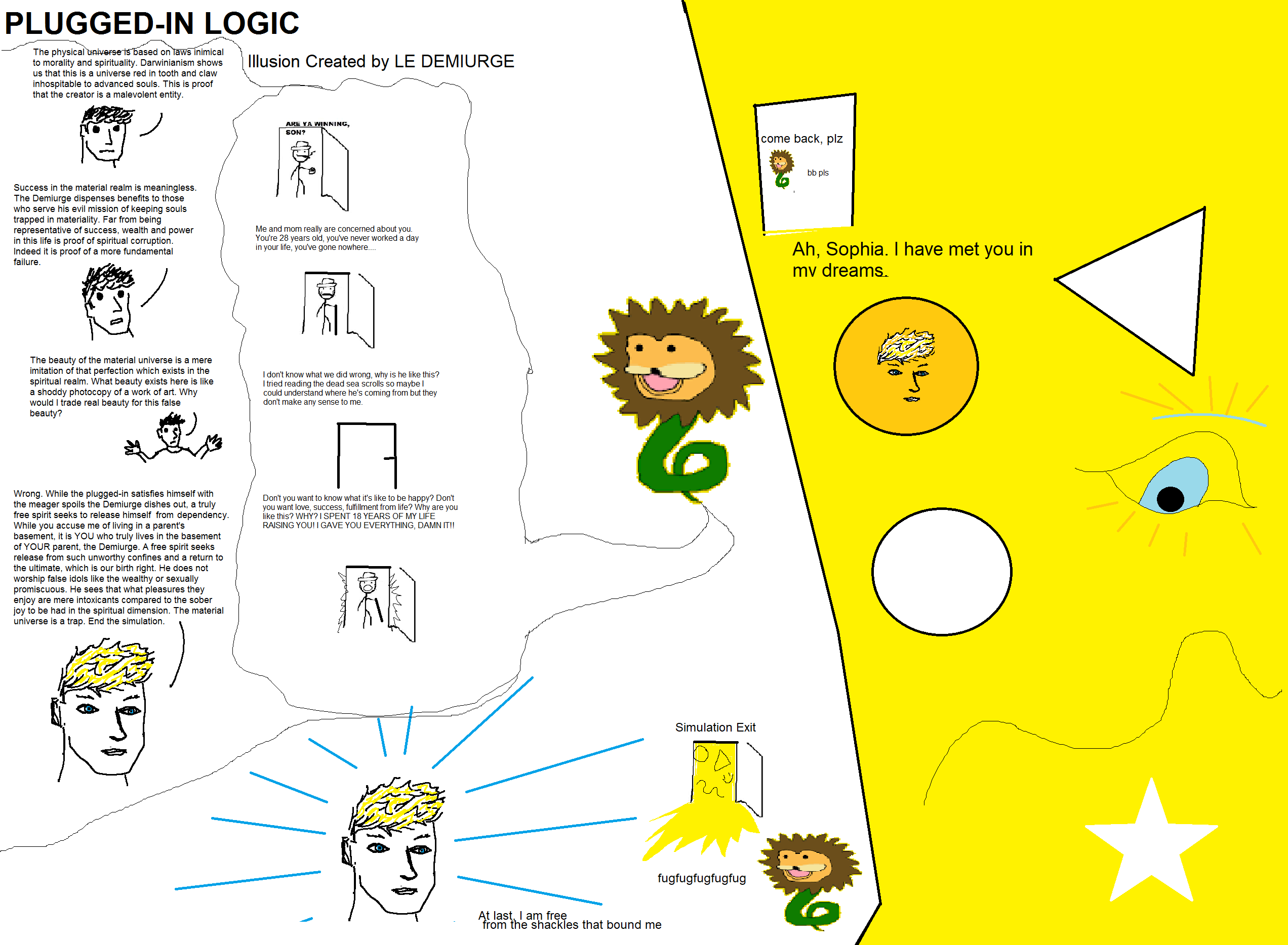 Let's be clear, if you believe in Sophia and the Demiurge and all that you're actually so far removed from wisdom you're basically the walking dead.You can believe in any kind of God you want and you actually chose to believe in the kind that is stupid and cruel for no reason just because you fail to appreciate God's perfect creation, as if you know what a perfect earth looks like.You deserve to suffer but by grace I'll give you this one post to try to clean the crusty shit out of your eyes so you can see clearly, then you're on your own again lmao.The Demiurge can not hurt you if you do not believe in it, you are the hylics you despise.