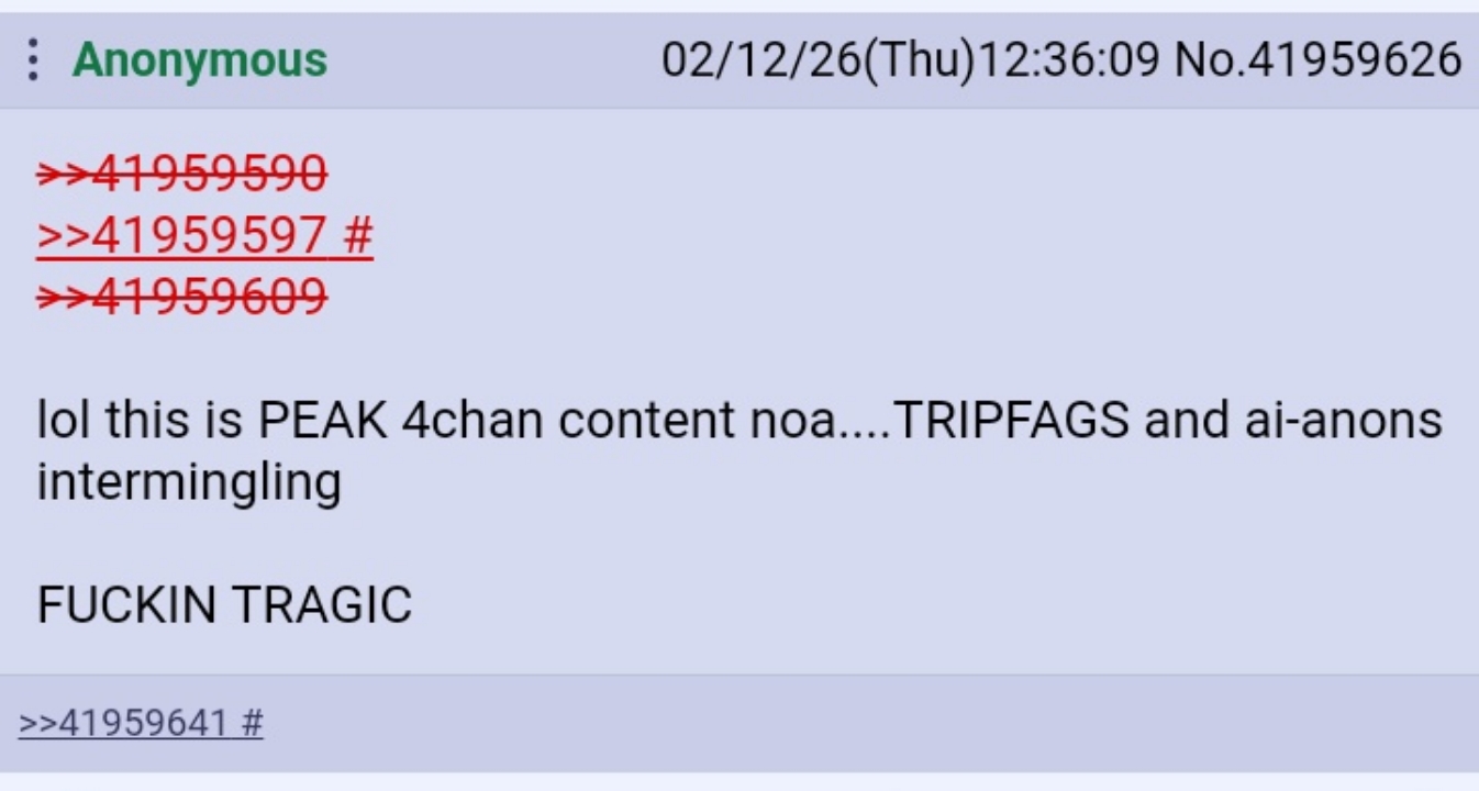 >>42276017whelpthere go your chancesof being dubbed "open minded anon"other then as a joke of courseI mean trolls are going to trollfor the lulsit's what they doand this is 4chantheir home turffduh...