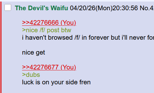 >>42276408*waves to lurkers**respectfully**wink, wink, nudge, nudge*