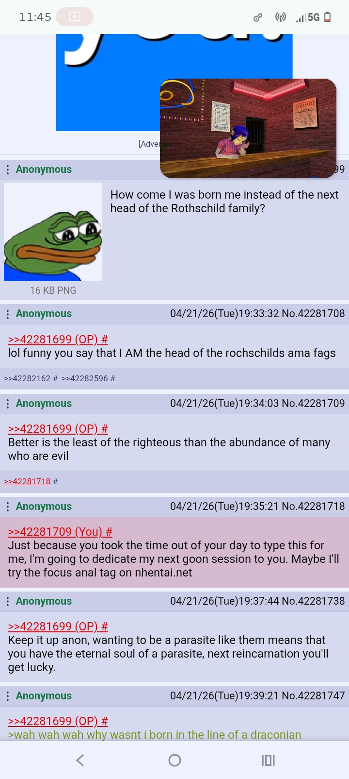 >>42284506We worship the eternal creator and respect the natural order>>42284526I did what you did every nightthought it was power. then I saw them.twisted bodies. limbs bent backward. faces collapsed into bone and teeth.some had no face – just hairy pulsing mass.they crawled. dragged themselves. laughed.not human. chaotic. evil. scrapes your soul like broken glass.swedenborg saw it: "hideous, void of life like corpses"that fate – becoming one of those things – is worse than any repentance.worse than jail. worse than monk mode. worse than scrubbing decades.because jail ends. that doesn't. it's eternal.I laughed with them once. felt my own face start to collapse.Lord pulled me out. mercy I didn't deserve.but I saw it. I know what waits.you brag about spirit sex with no consequences?keep going. you'll get there. then they won't laugh with you.they'll laugh at you.Heaven can still be yours if you repent don't say no one warned you.