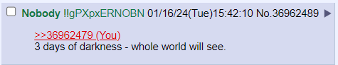 >>42290363is any answer that starts with >implying goodand why did a dream about stealing time travel on a consensus planet exist (after they want to deterministically study YOU)obviously the answer is that every person on earth had the perfect day and they wanted it to repeatconfidence of any kind cannot be allowed in a chess tournament as it is undue pressure unto litigation that can make the guiltless guilty, thus, yes, it is possible to checkmate God, but doing so on a bluff has already happened