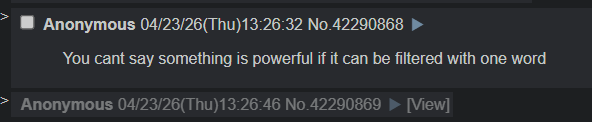 >>42292060You're ban evading openly? Not even going to lie and say someone else was posting with your IP? Sounds like someone who isn't actually afraid of the jannies banning them.