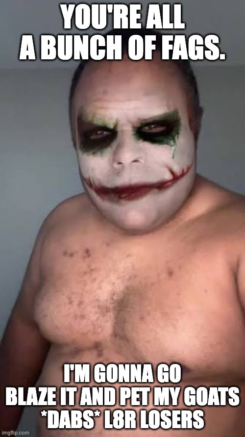 Go ahead spam more make me more infamous than I already am doesn't make me feel a thing but pity that you're wasting time on me the ki/ng/ like the other fake opps who are all mentally ill fat or poorfags.