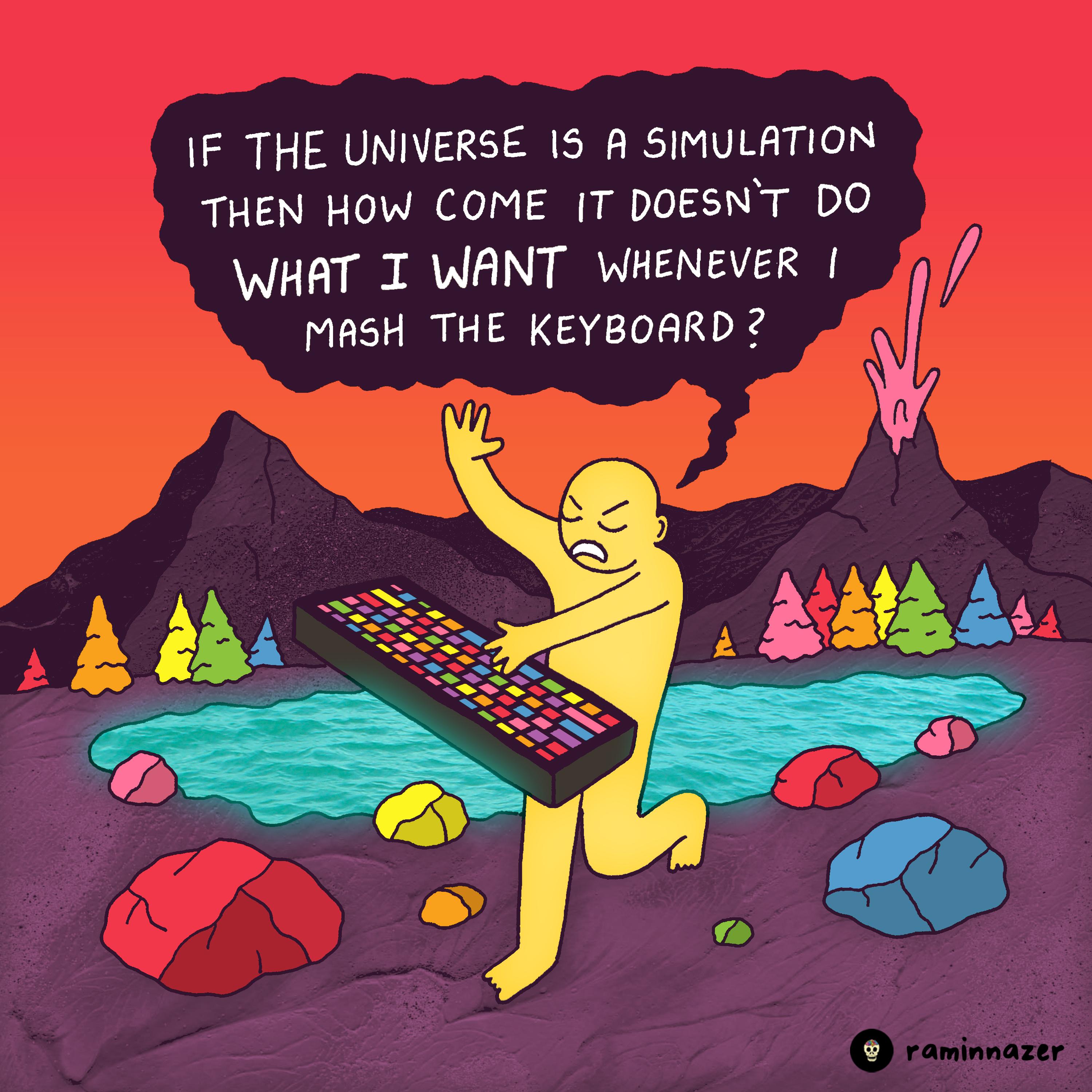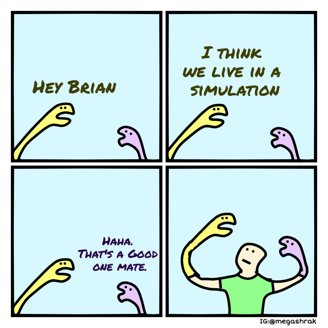It's not a simulation, it's a virtual reality. And it fucking sucks btw. How is the reality a worse virtual reality than the ones I can think up in my head? This sucks major ass.