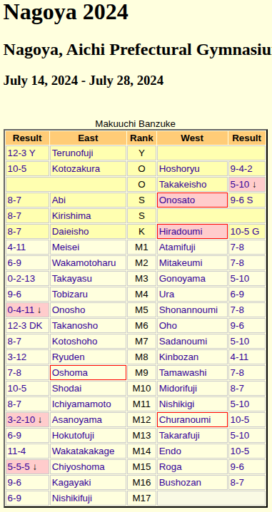 100 years of the NSK edition>Banzuke:http://sumodb.sumogames.de/Banzuke.aspxhttps://www.sumo.or.jp/EnHonbashoBanzuke/index/>Fight Schedule & Results:https://www.sumo.or.jp/EnHonbashoMain/torikumi/1/1/>Some sumo links and how to watch live:https://rentry.org/uwbgc88dPrevious thread >>251291
