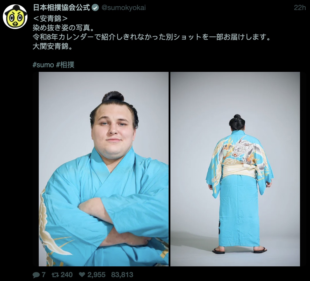 Sumo is the antithesis of anime. Sumo is also clearly the superior of the two.Anime is always trying to force it's way into sumo, on mawashis or in mascots or in any other way they can think up, but it never sticks, never makes sense, everyone always sees the mixing of the two as a stupid joke at the expense of anime. Sumo never bothers to or even thinks of trying to force an association between itself and anime. Sumo is confident and proud, anime is desperate, weak and cringe.