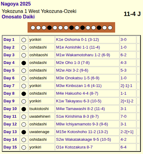 Onosato clears this basho EZ. He promised he would win at least 4 this year.