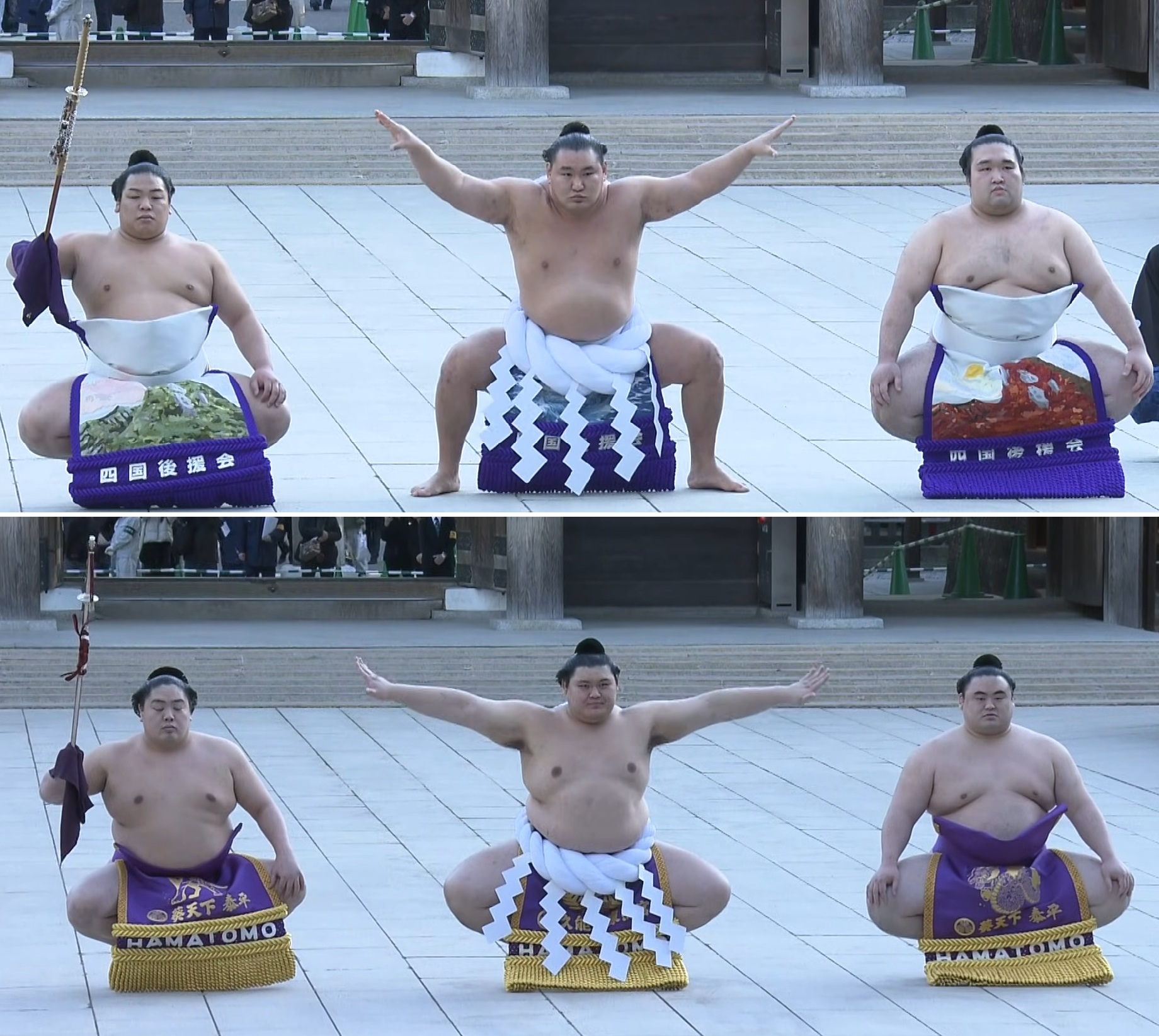 >Emperor requests that all active yokozuna and descendants of yokozuna perform a dohyo-iriImagine a sequence of dohyo-iri that goes Hoshoryu, Onosato, Kotozakura, Oho, Koga.