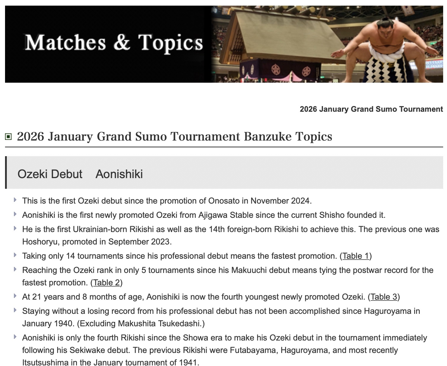 2026 January Grand Sumo Tournament Banzuke Topics