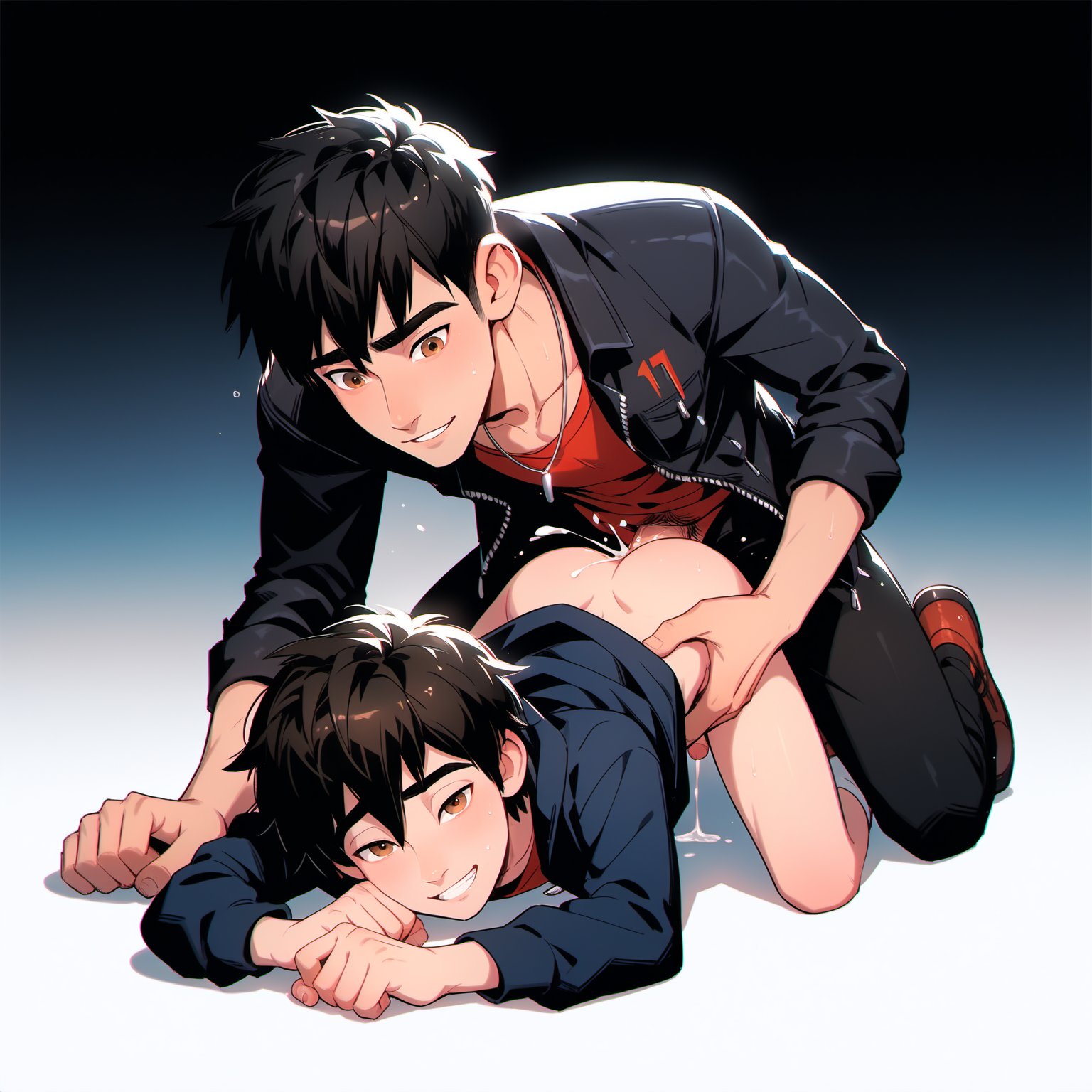 >>3086746>>3086738>>3086737Note that I had issues getting the "nipple tweak" to work along side the "69" pose. I also didn't know that artist you had posted, so I used "Arsh" style (Arsh had been known as "the star wish", so i needed both names).The more "tags" on danbooru, the more training data the checkpoint received, and therefor the better the matrix is at generating based on those tags. That means characters, concepts, and artists that do not have at least 100-150 decent and properly tagged pictures on danbooru are basically not trained in and can't be recreated. In some cases you can download a "Lora" (Low-Rank Adaptation) which is a small amount of training data that can be added on during generation to help with untrained characters etc.. Note that most Loras are DOGSHIT and will NOT WORK WELL. It is a very common newby trap to add low quality loras, and then wonder why they get slop images. You really should stick to one character lora and one style lora at a time (if that). Even then you will need to make many practice pictures experimenting with different weights (adding :0.7 for example) to make sure things balance out between good quality and the lora actually giving you what you want. The other half of making AI is understanding a whole bunch of technical settings, including but not limited too: Sampling method ; Schedule type ; Sampling steps ; Upscaler/Hires.fix ; CFG Scale ; resolution settings ; ADetailer ; ...to name the more important ones. Different checkpoints require different settings to give high quality outputs. This requires more experimentation, although the popular checkpoints typically have a lot of examples on sites like CivitAI you can copy from, at least as a starting point.In this example, I used the same checkpoint and settings, but I changed the Sora/Riku tags to Naruto/Sasuke, and the artist to "Beitemian", but otherwise left everything the same.