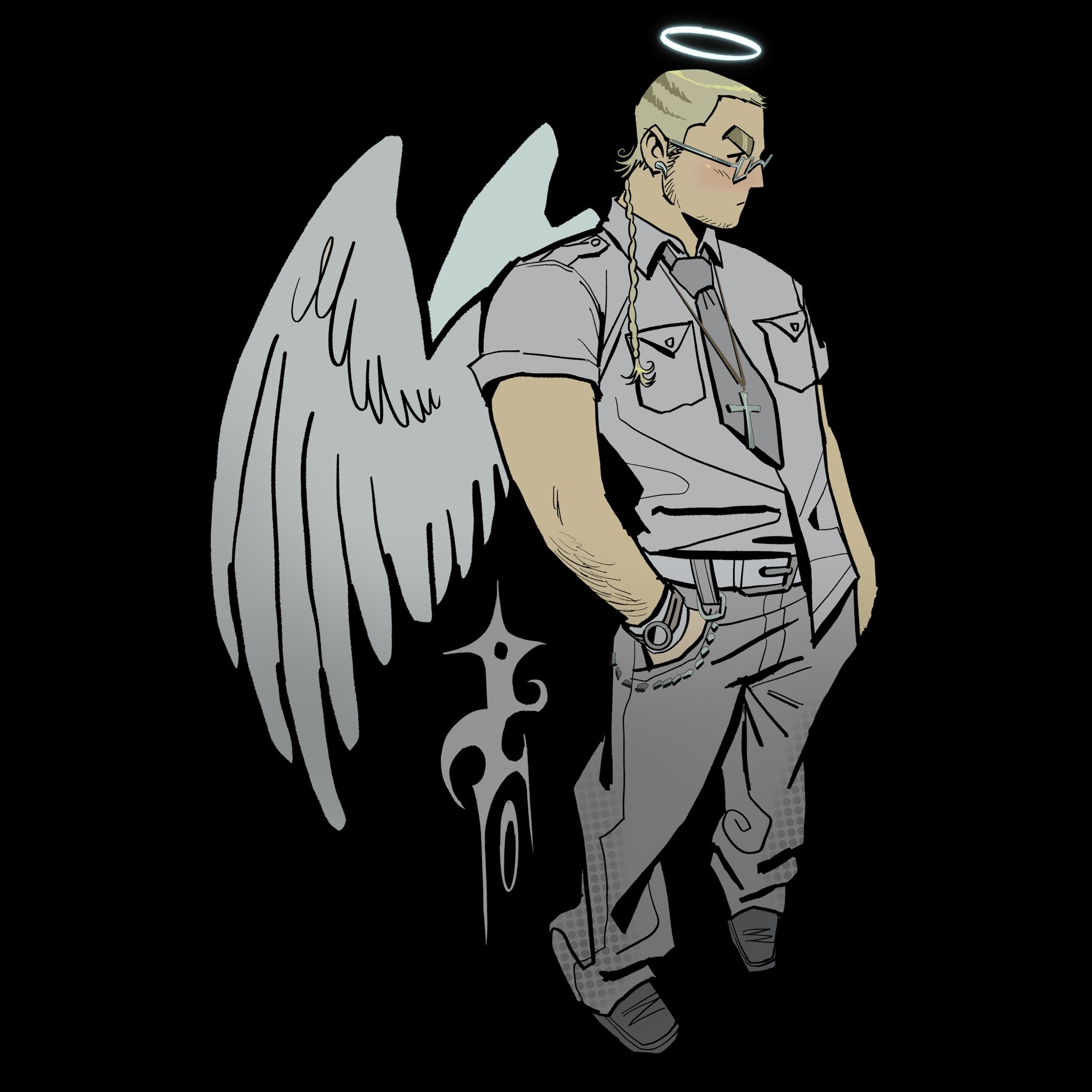 Requesting a hunky naked angel bullying a hunky demon (denying him sex, demon in rope bondage, or even the demon begging for the angel's delicious holy cock).